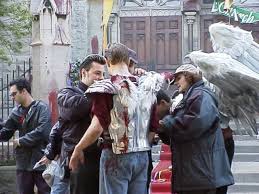голливудский ширпотреб Дробязко добавил прижигание раны финкой (чем мы хуже Рембо), сверхвыносливость